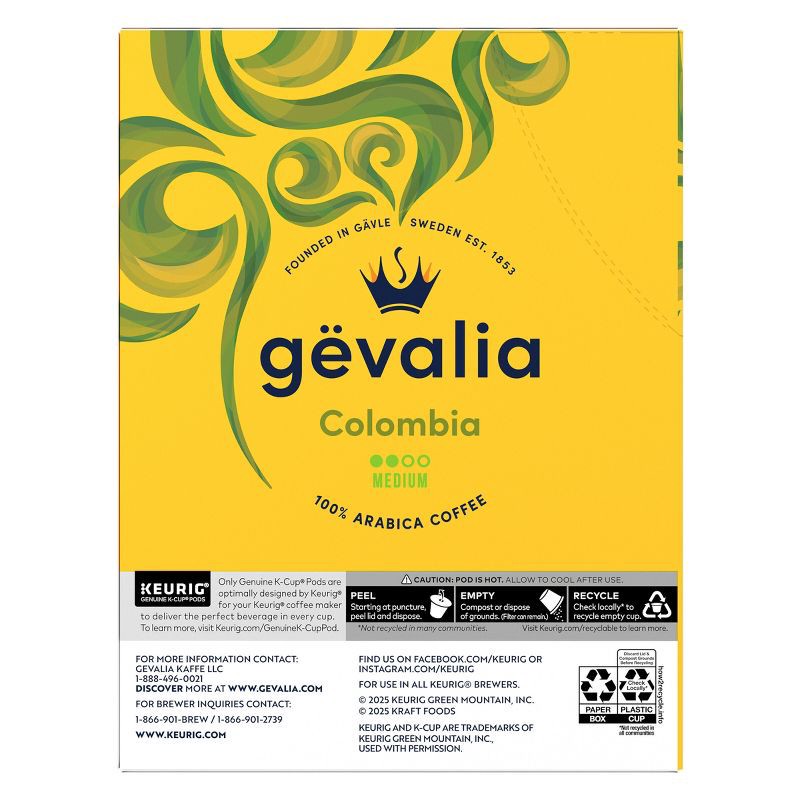 - MEDIUM ROAST: Gevalia Colombia Medium Roast K‐Cup® Coffee Pods provide the perfect care for your perfect cup