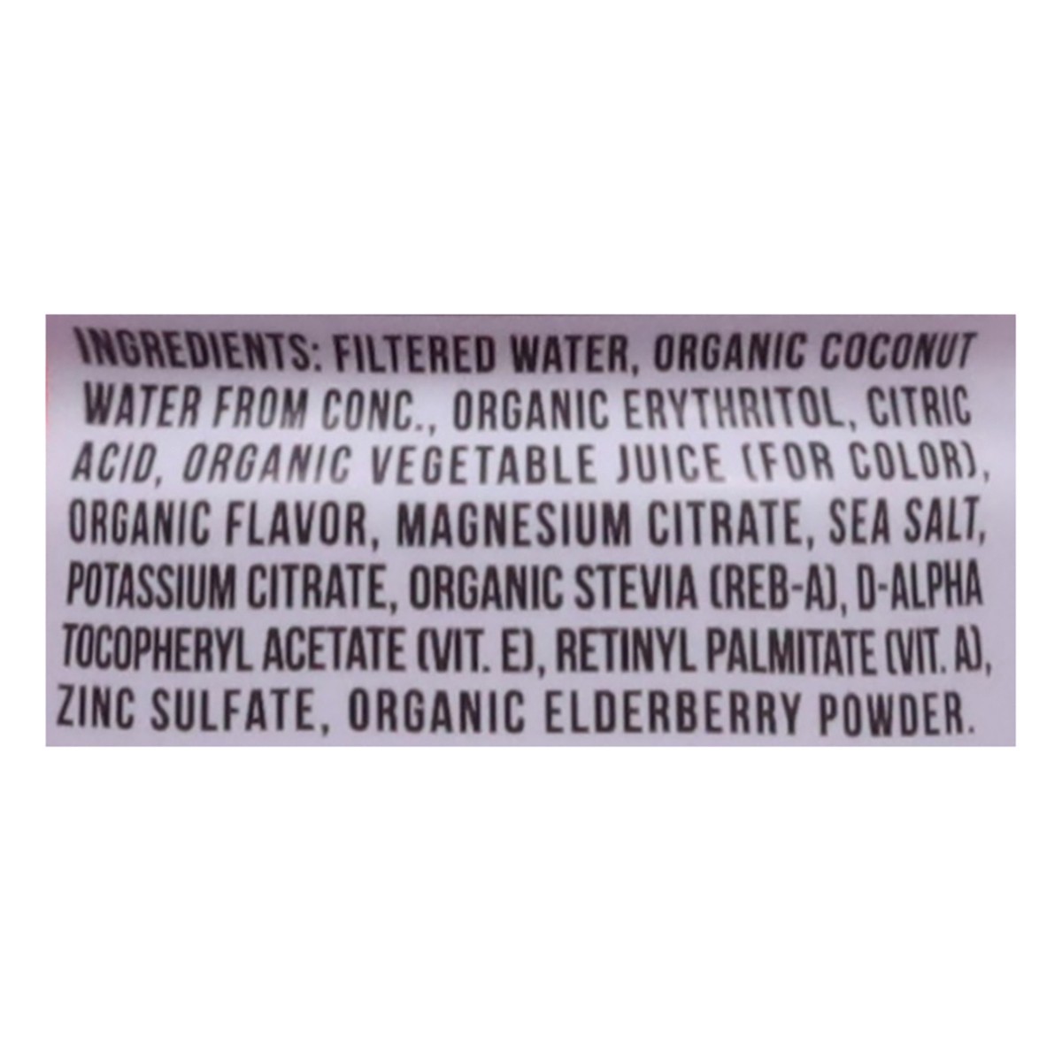 Filtered Water, Organic Coconut Water from Concentrate, Organic Erythritol, Citric Acid, Organic Vegetable Juice (for Color), Organic Flavor, Magnesium Citrate, Sea Salt, Potassium Citrate, Organic St…