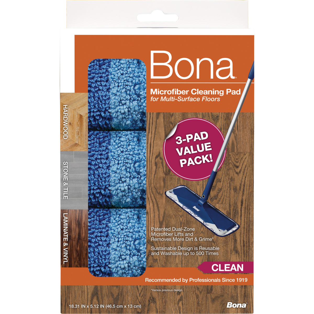Bona Cleaning Products Reusable Mop Refill Multi Surface Microfiber Cleaning & Mopping Pads Value Pack 3ct