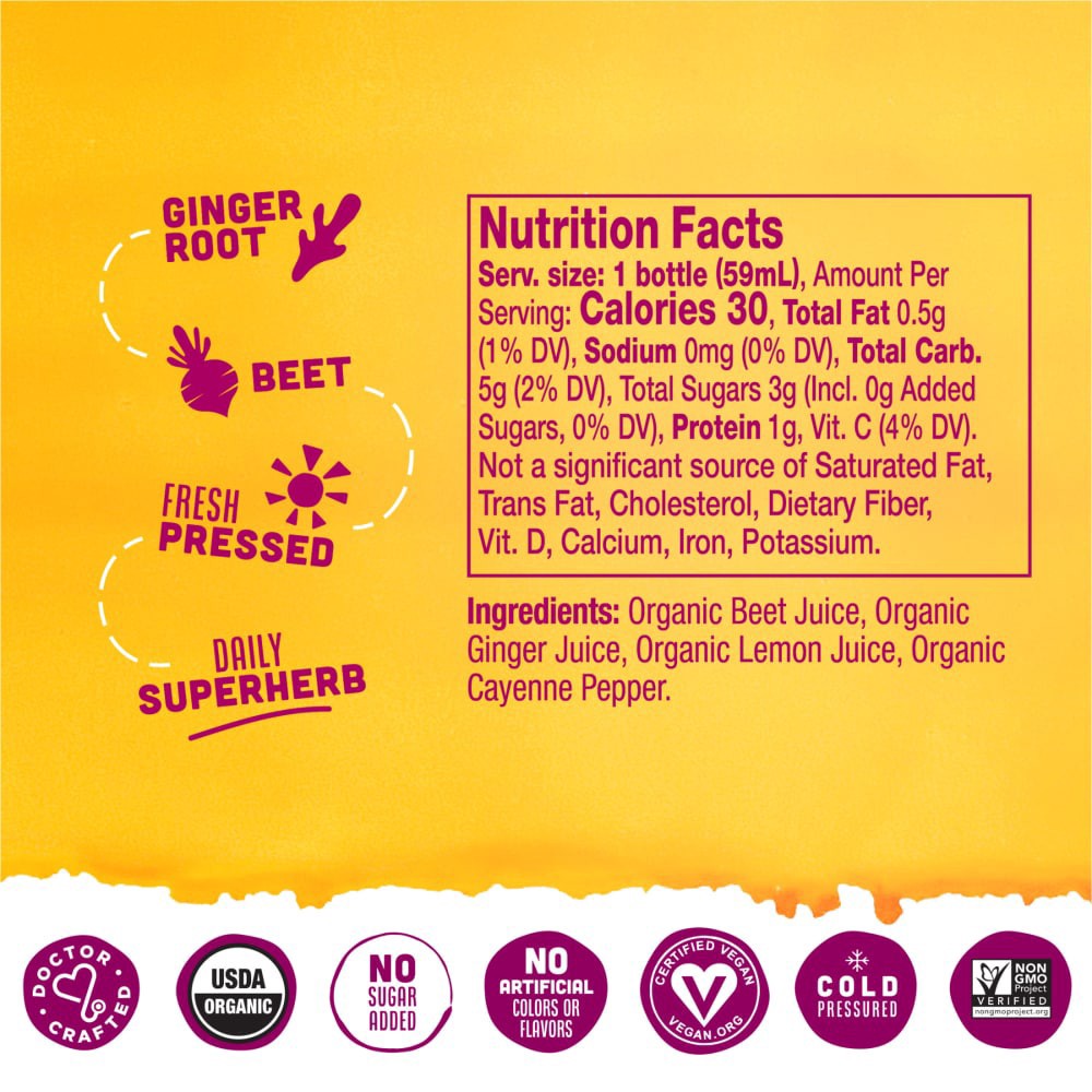 Organic Beet Juice, Organic Ginger Juice, Organic Lemon Juice, Organic Cayenne Pepper