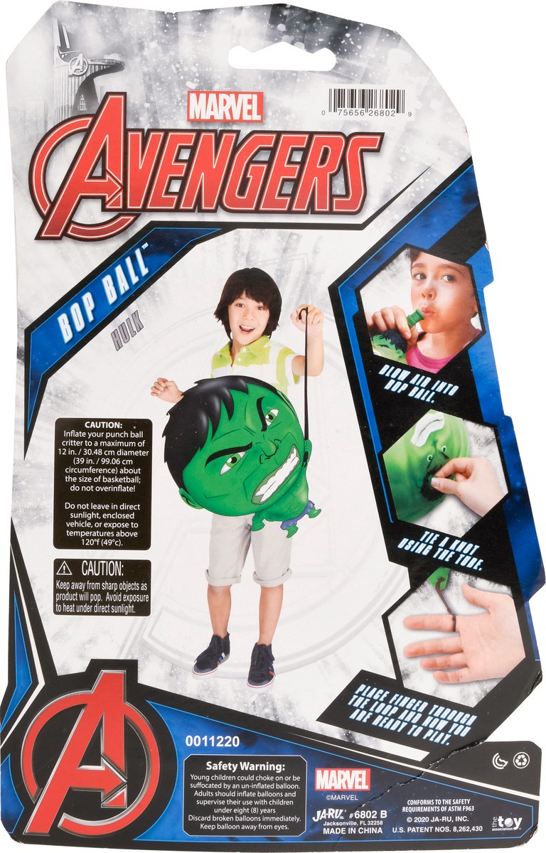 Punch it. Instructions on back of package. 61/2 x 10. Blow air into bop ball. Tie a knot using the tube. Place finger through the loop and now you are ready to play. The Toy Association.