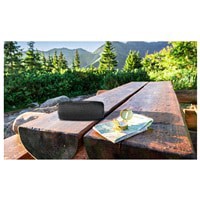 Waterproof, (IPX5) sleek fabric comes together for a speaker that's as functional as it is fashionable so you can take your sound track with you - no matter the adventure.