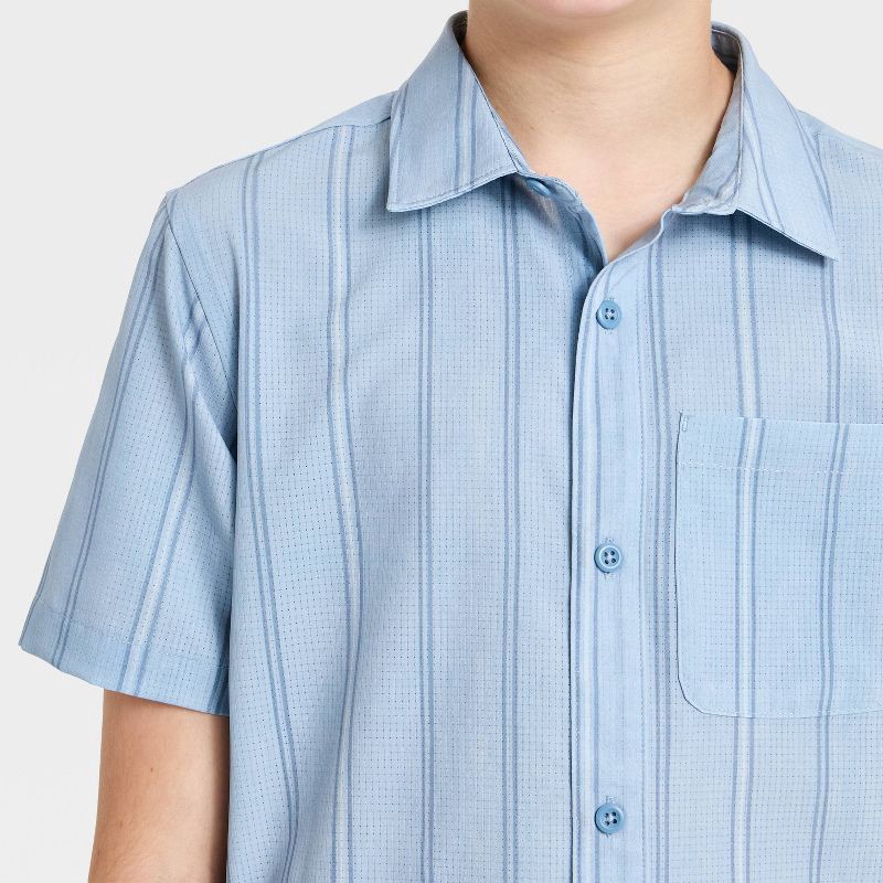 Boys' Textured Woven Shirt - All In Motion™ Slate Blue S
