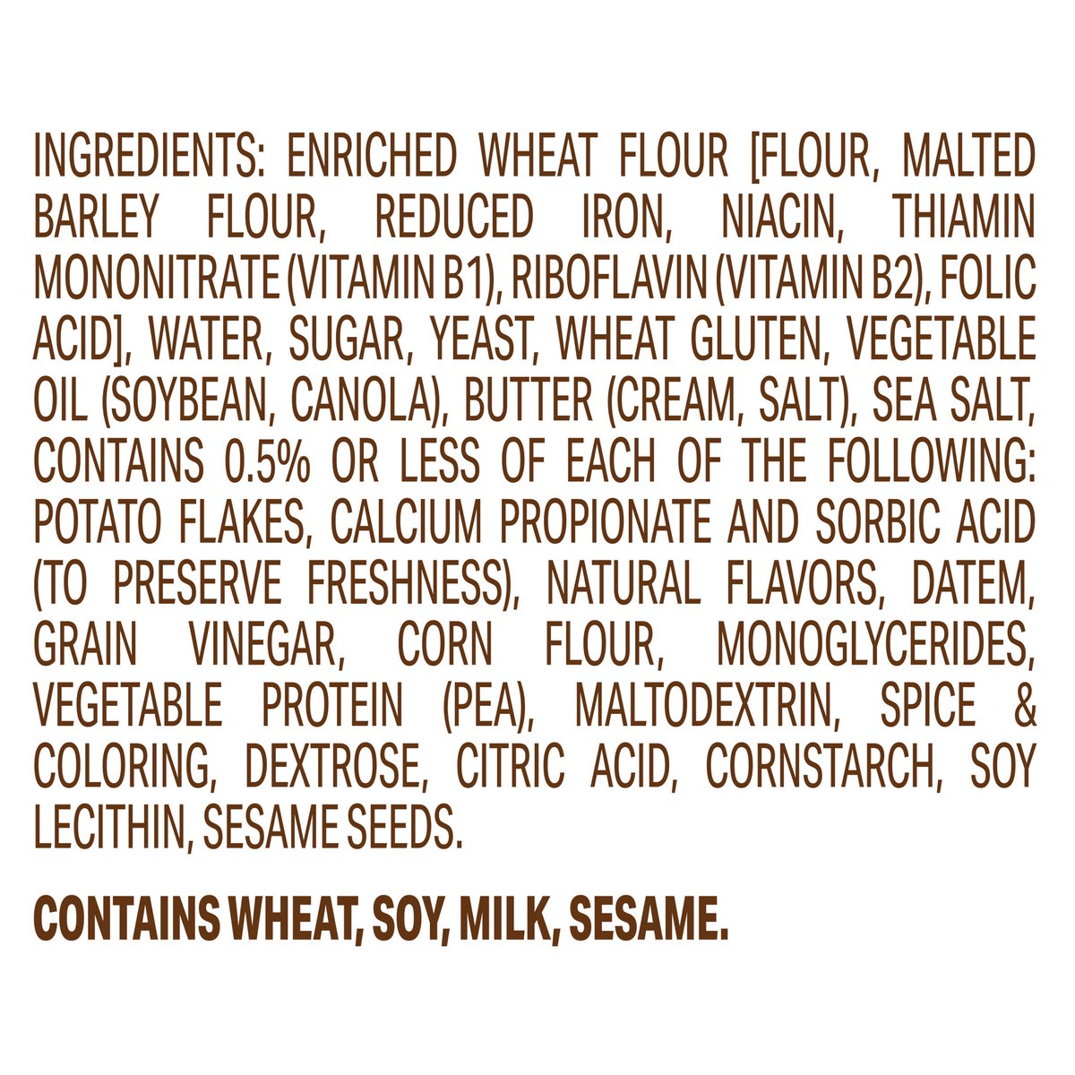 Enriched Wheat Flour [Flour, Malted Barley Flour, Reduced Iron, Niacin, Thiamin Mononitrate (Vitamin B1), Riboflavin (Vitamin B2), Folic Acid], Water, Sugar, Yeast, Wheat Gluten, Vegetable Oil (Soybea…