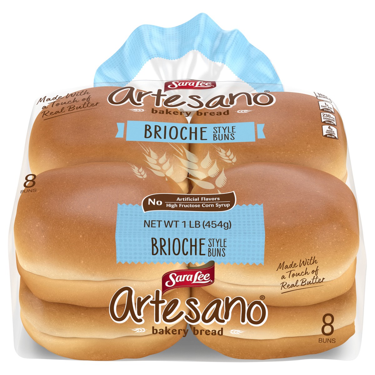 8 pre-sliced hamburger buns. Made with touch of butter for a rich, authentic flavor. Sara Lee Artesano Brioche Hamburger Buns contain no high fructose corn syrup and are made with no artificial colors…