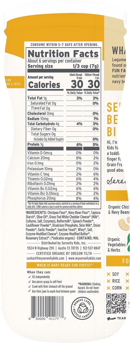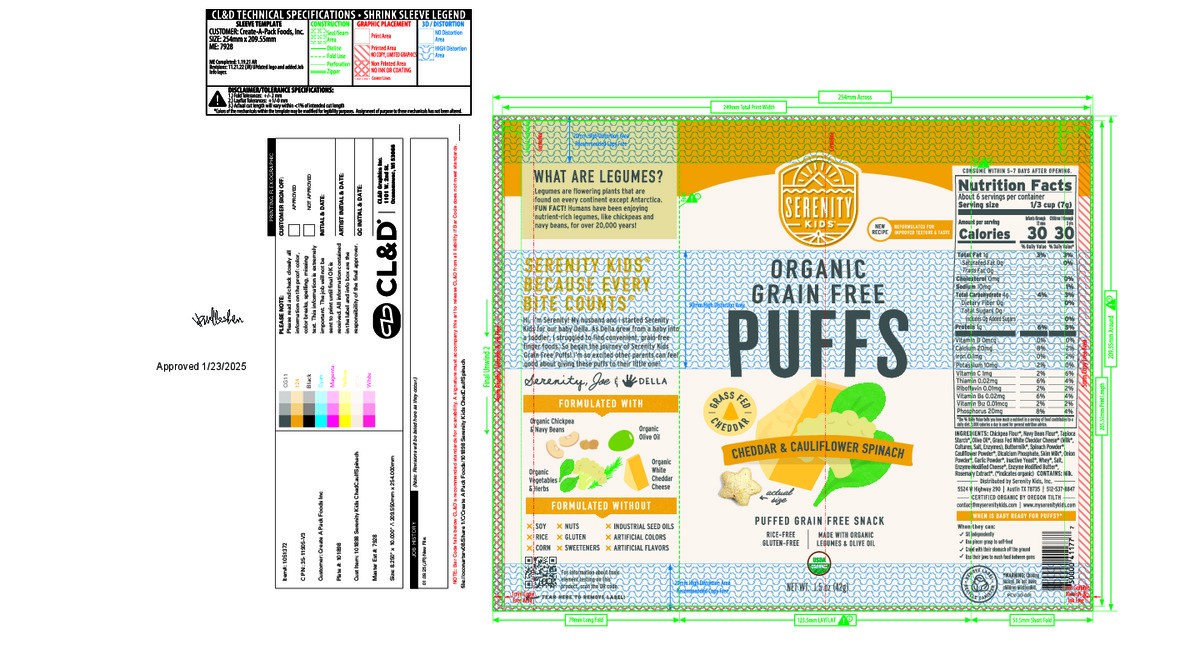Serenity Kids Grass Fed Cheddar & Cauliflower Spinach Grain Free Puffs, 1.5oz