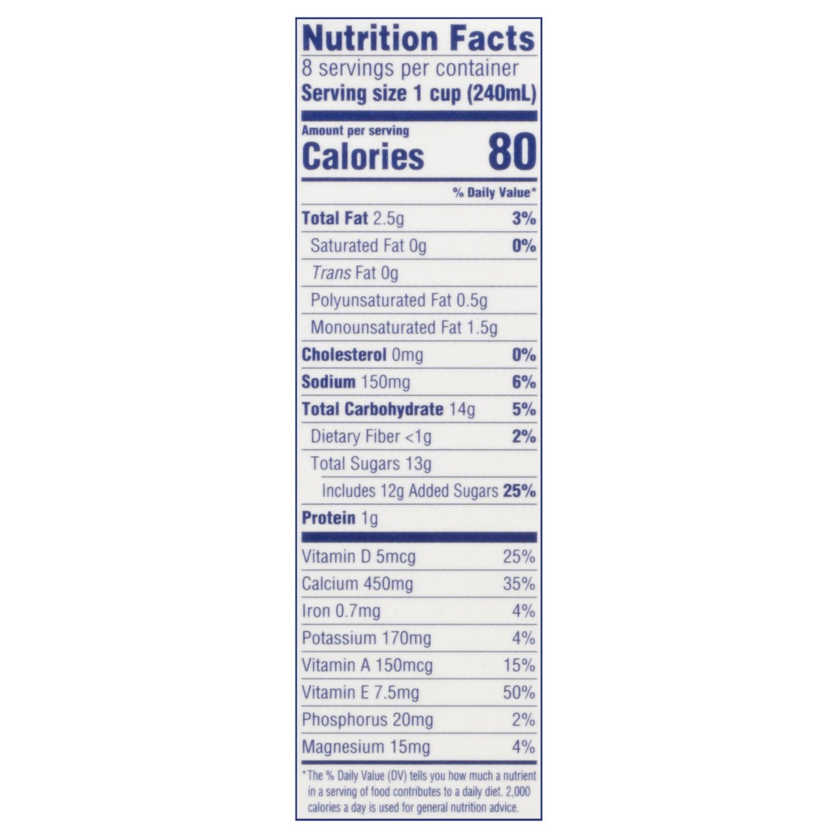 ALMONDMILK (FILTERED WATER, ALMONDS), CANE SUGAR, CALCIUM CARBONATE, NATURAL FLAVORS, SEA SALT, POTASSIUM CITRATE, SUNFLOWER LECITHIN, GELLAN GUM, VITAMIN A PALMITATE, VITAMIN D2, D-ALPHA-TOCOPHEROL (…