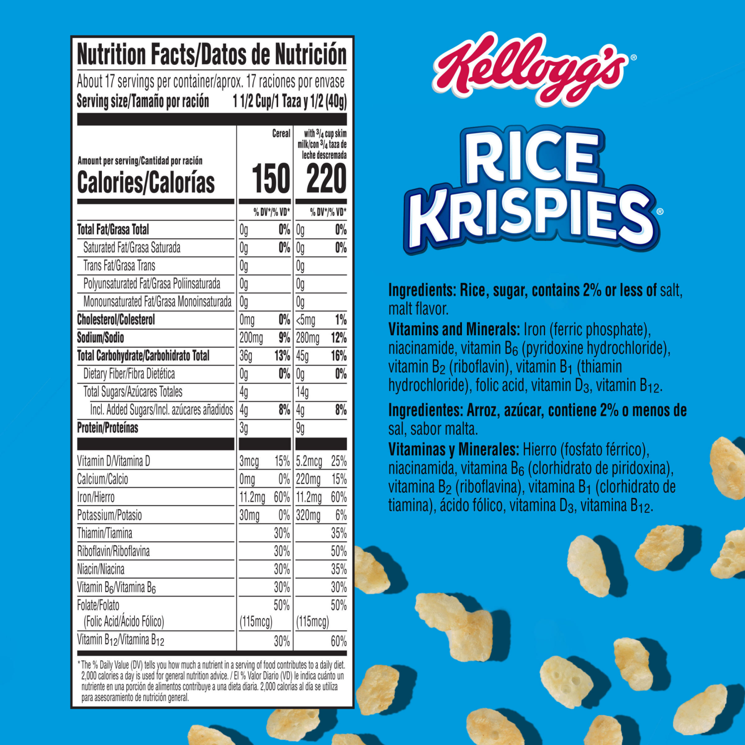 Rice, Sugar, Contains 2% or Less of Salt, Malt Flavor. Vitamins and Minerals: Iron (Ferric Phosphate), Niacinamide, Vitamin B6 (Pyridoxine Hydrochloride), Vitamin B2 (Riboflavin), Vitamin B1 (Thiamin …