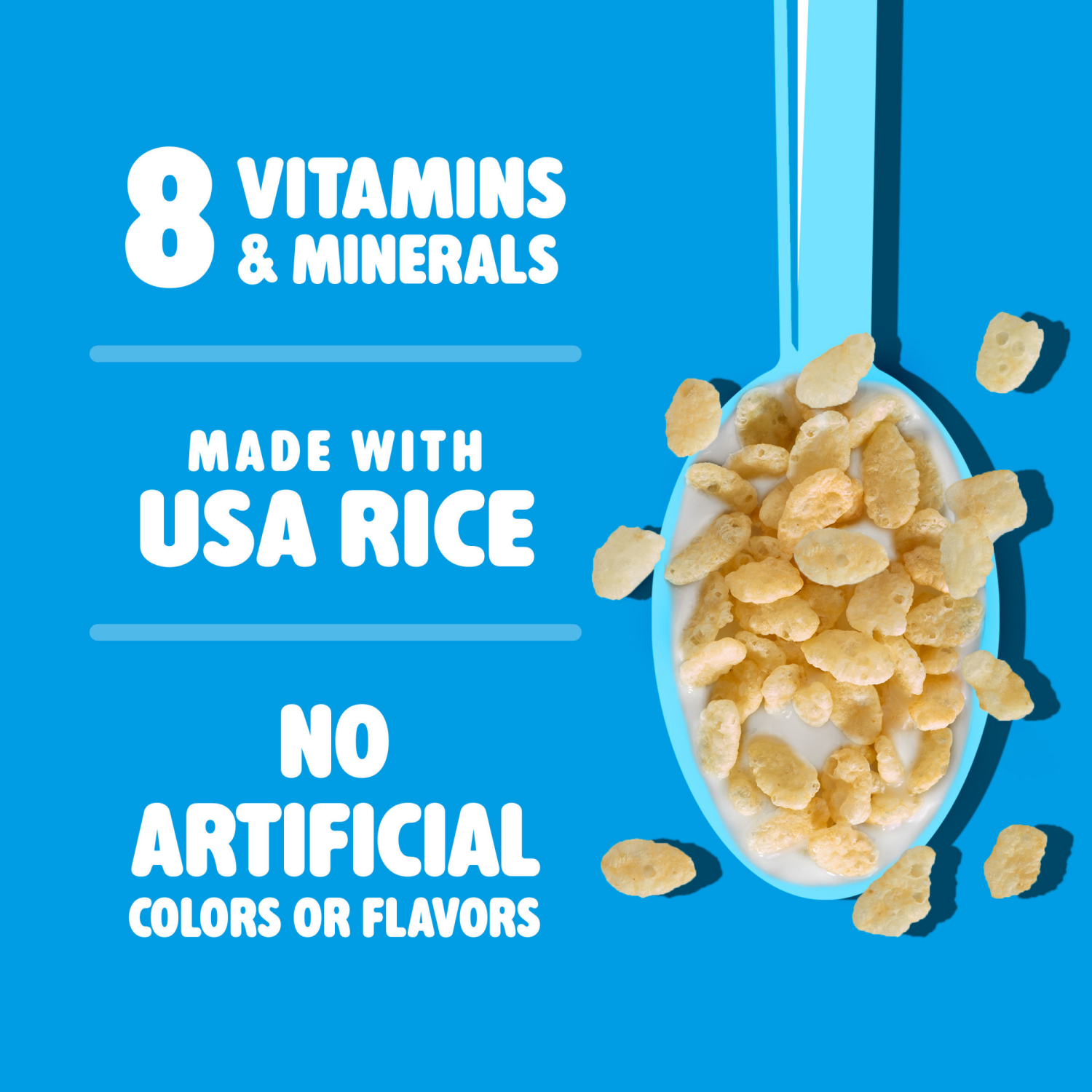 - Oven-toasted rice cereal in every bite
