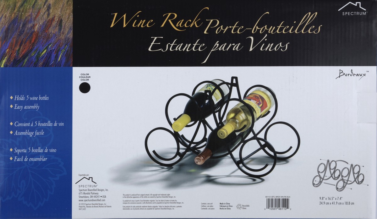 Spectrum’s Bordeaux “Knock Down” 5-Bottle Wine Rack combines a stylish look with space-saving convenience. The clever design keeps wine bottles at the proper angle to help prevent corks from drying. M…