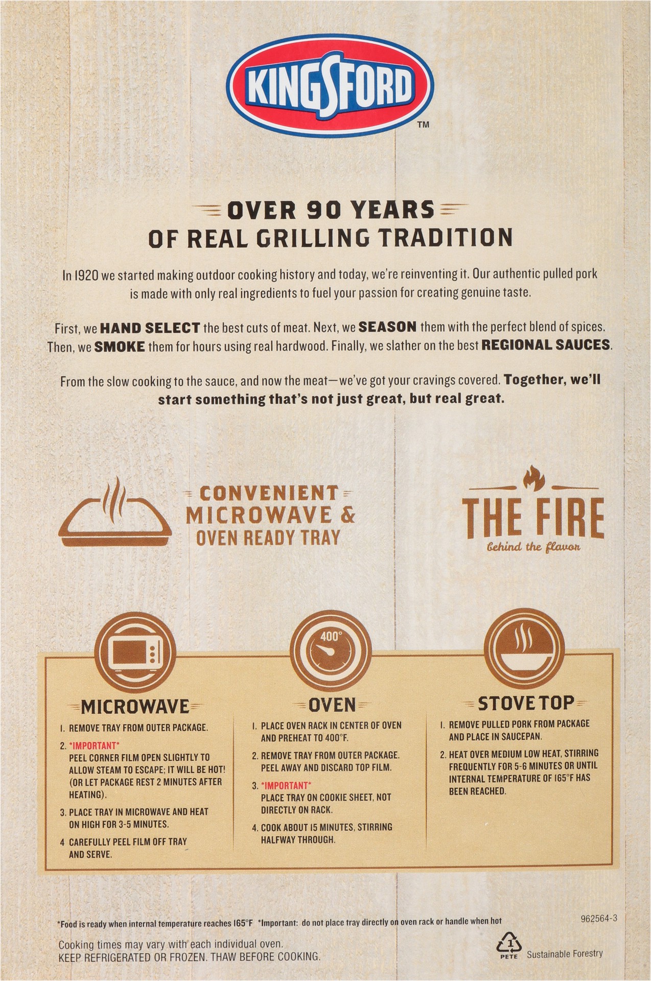 Pulled Pork with Sweet & Smoky Kansas City Style BBQ Sauce U.S. inspected and passed by Department of Agriculture. www.kingsfordbbqmeats.com 1-800-955-RIBS; consumer@cbqribs.com Sustainable Forestry. …