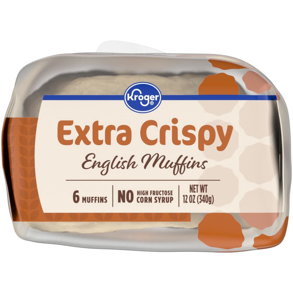 Kroger® Extra Crispy English Muffins are sure to leave your taste buds delighted! Made with ingredients including enriched flour, corn flour, and yeast, they turn into crispy perfection. No high fruct…