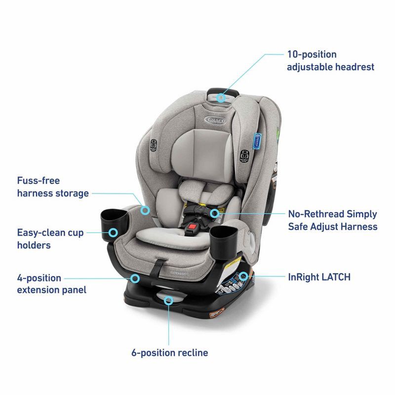 - Extend2Fit 4-position adjustable extension panel provides up to 5" additional legroom, allowing your child to safely ride rear-facing longer