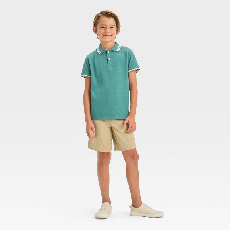 Boys' Flat Front 'At the Knee' Chino Shorts - Cat & Jack™ Beige 10: Adjustable Waistband, Side Pockets