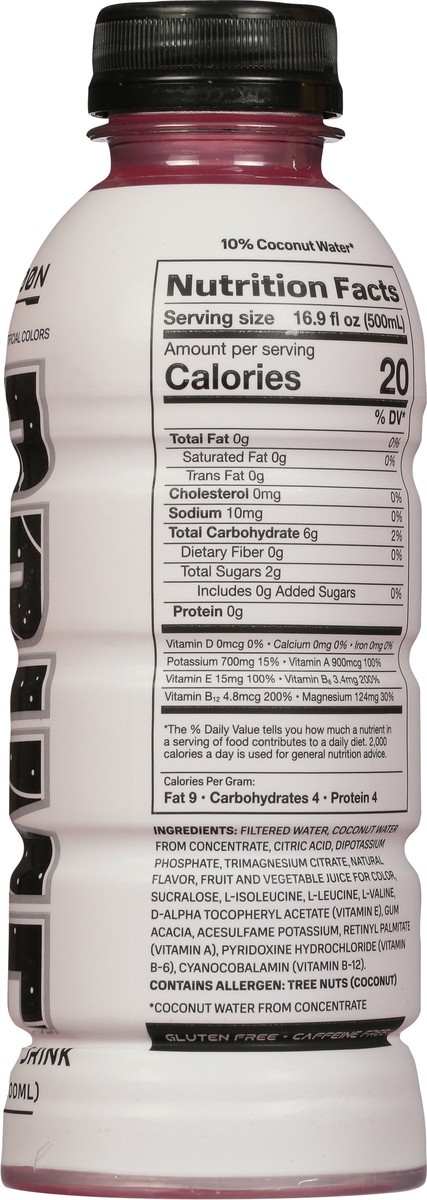 Filtered Water, Coconut Water from Concentrate, Citric Acid, Dipotassium Phosphate, Trimagnesium Citrate, Natural Flavor, Fruit and Vegetable Juice for Color, Sucralose, L-Isoleucine, L-Leucine, L-Val…