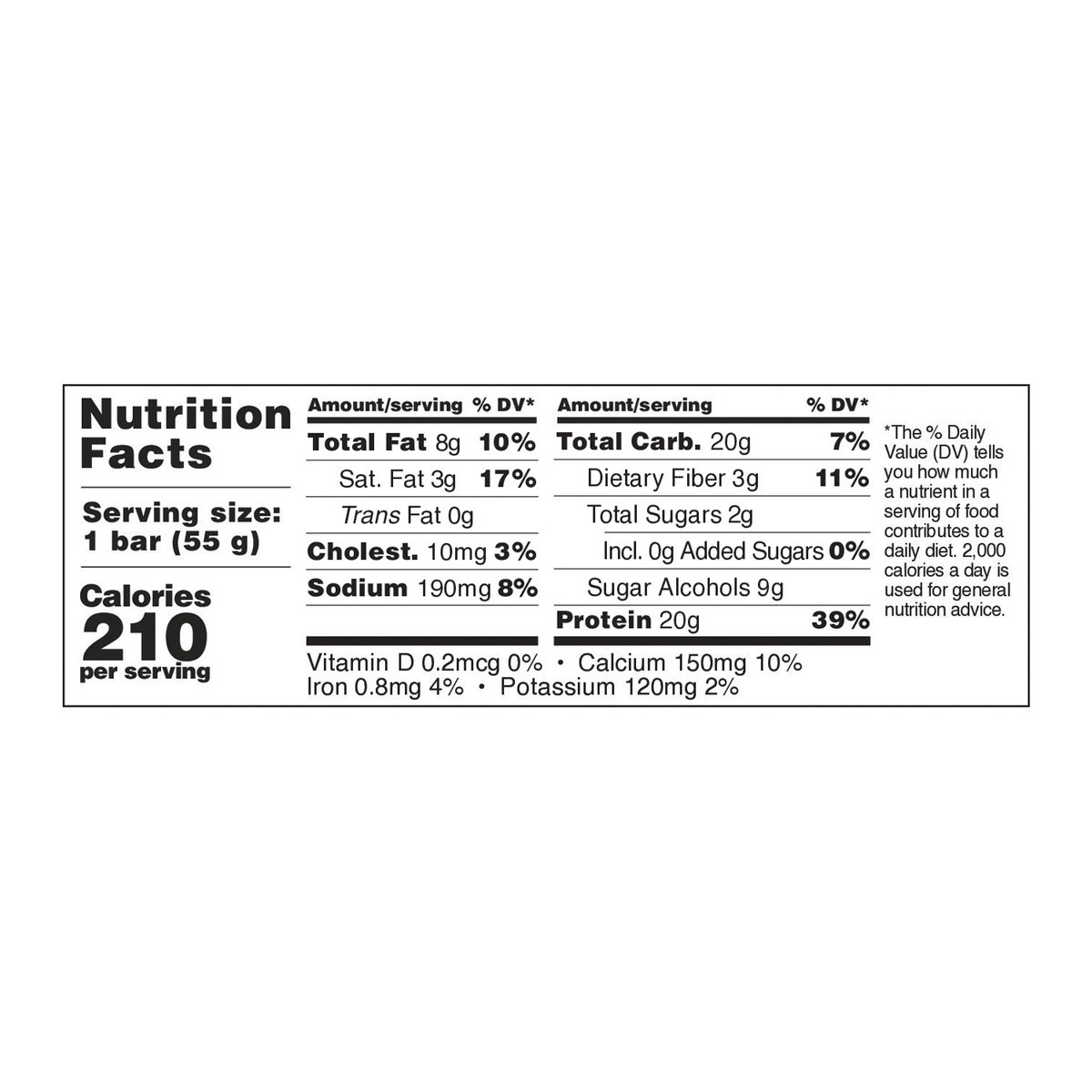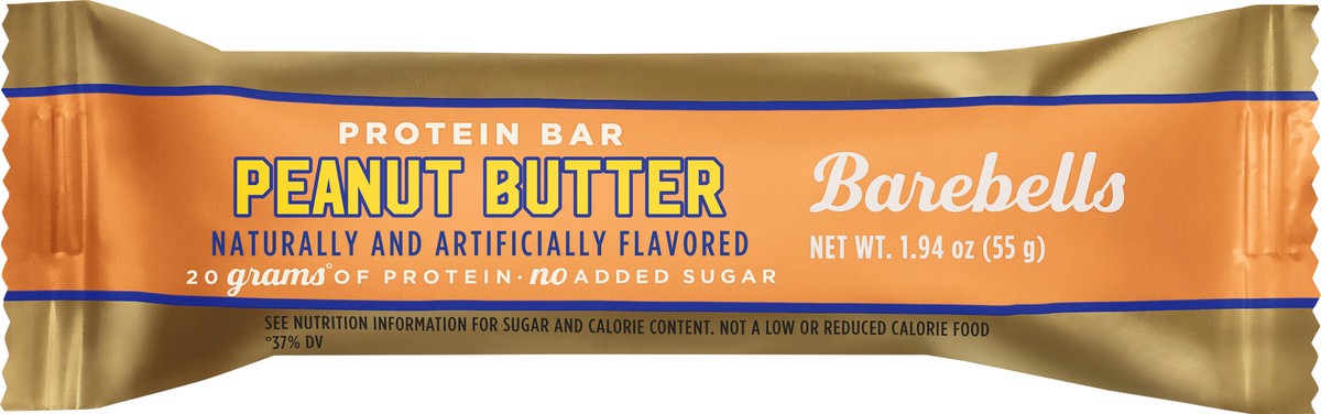 Naturally and artificially flavored. 20grams (a) of protein. (a) 37%DV. No added sugar. See nutrition information for sugar and calorie content. Not a low or reduced calorie food. www.barebells.com. M…
