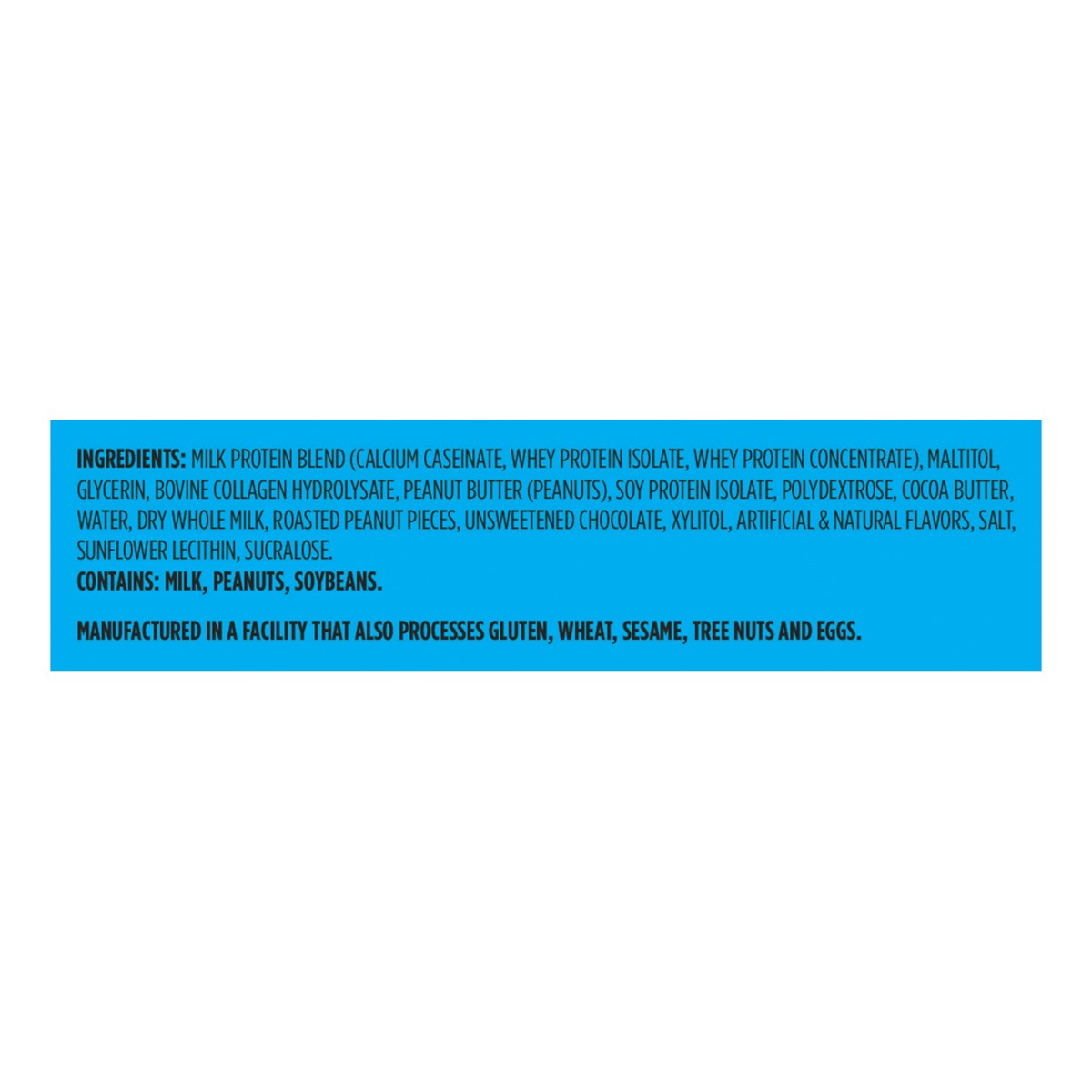 Milk Protein Blend (Calcium Caseinate, Whey Protein Isolate, Whey Protein Concentrate), Maltitol, Glycerin, Bovine Collagen Hydrolysate, Peanut Butter (Peanuts), Soy Protein Isolate, Polydextrose, Coc…