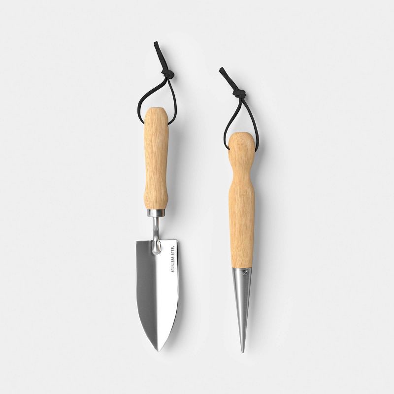 Enhance your gardening routine with this Planting Garden Tool Set from Threshold™. This set includes a spade for digging and planting and a dibber to make holes in the soil for seeds. Made of metal, t…