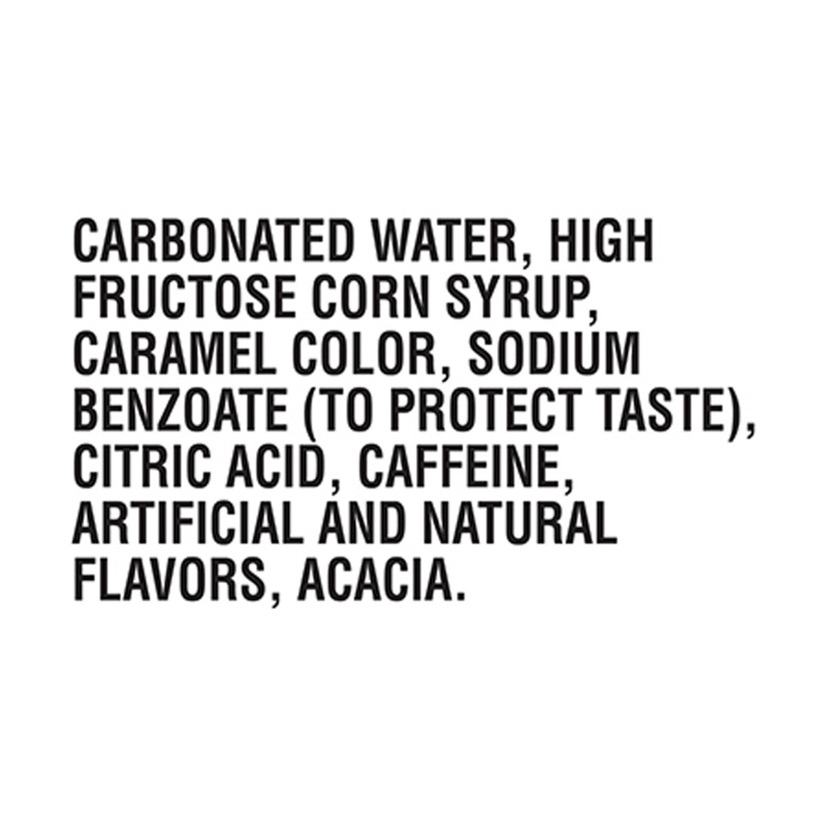 Carbonated Water, High Fructose Corn Syrup, Caramel Color, Sodium Benzoate (to Protect Taste), Citric Acid, Caffeine, Artificial and Natural Flavors, Acacia.