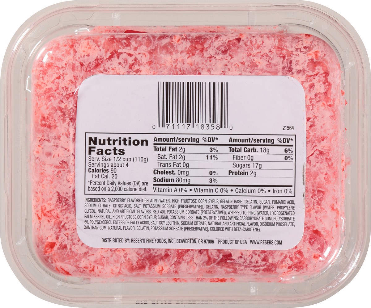 Reser's Raspberry Parfait is a sweet parfait dessert of gelatin blended with a creamy, rich whipped topping.