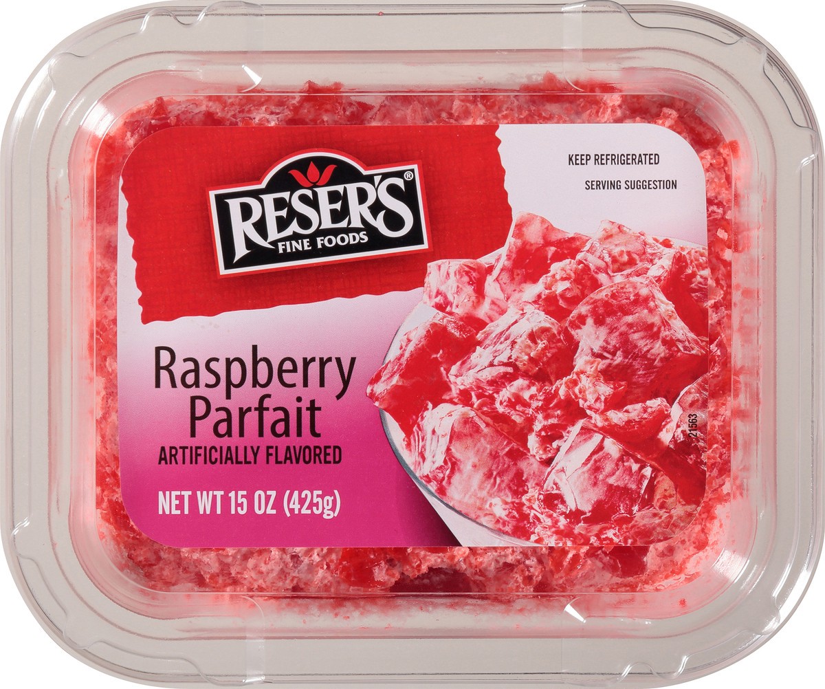 Reser's Raspberry Parfait is a sweet parfait dessert of gelatin blended with a creamy, rich whipped topping.