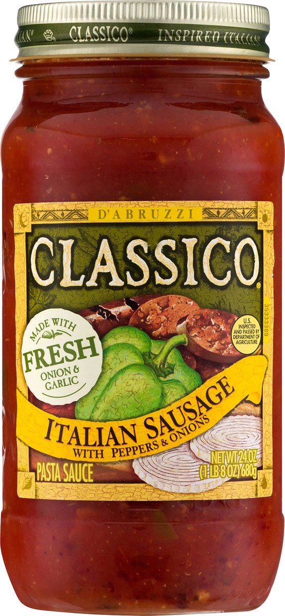 Classico Italian Sausage with Peppers & Onions Pasta Sauce, 24 oz Jar