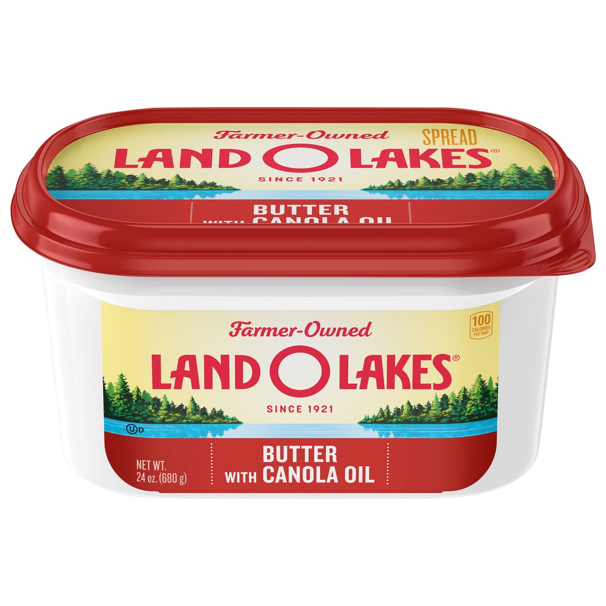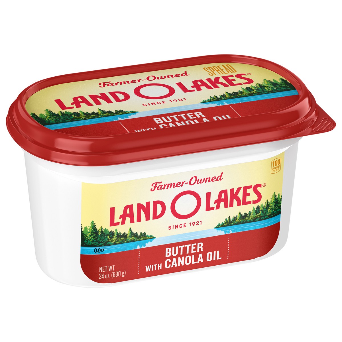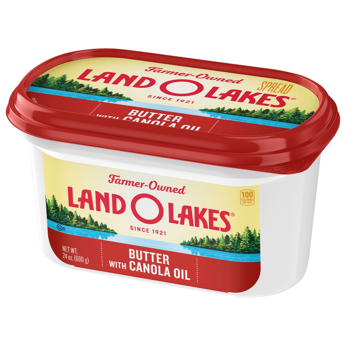 Land O Lakes Butter with Canola Oil is made with quality ingredients and gives you the taste you love, spreadable right out of the fridge. It provides the butter taste you love with the spreadable con…