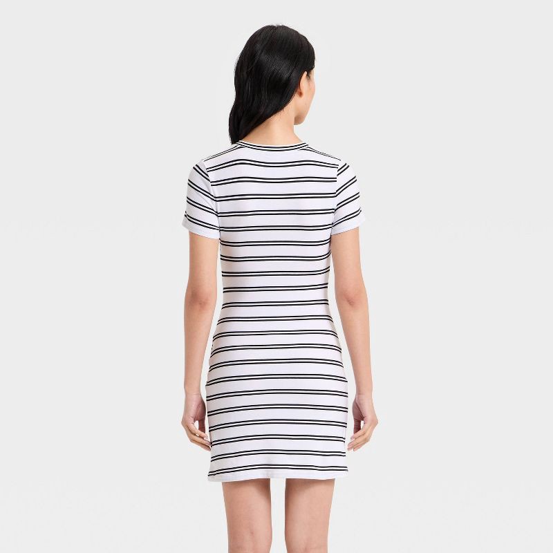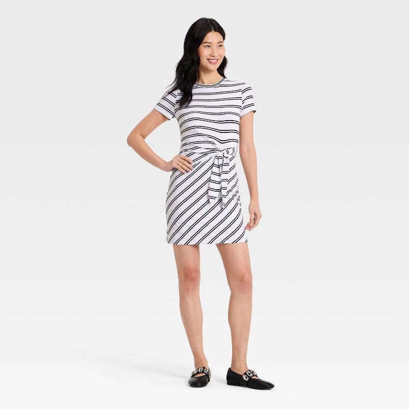Women's Short Sleeve Tie-Front Knit Mini Dress - A New Day™ White/Black Striped L