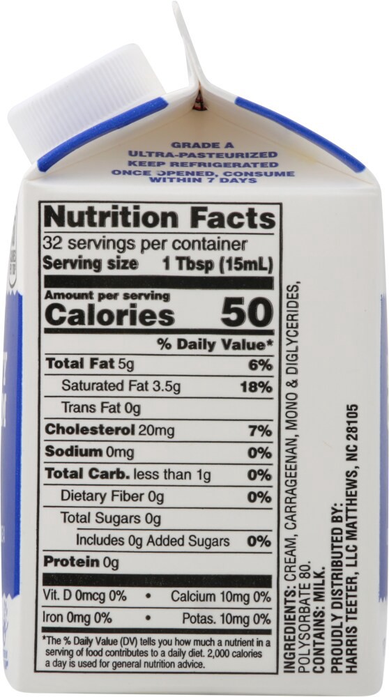 Heavy Cream, Milk, Contains Less than 0.5% of: Carrageenan, Mono- and Diglycerides, Polysorbate 80.