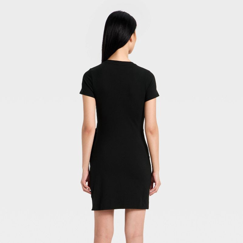 Women's Short Sleeve Tie-Front Knit Midi Dress - A New Day™ Black M