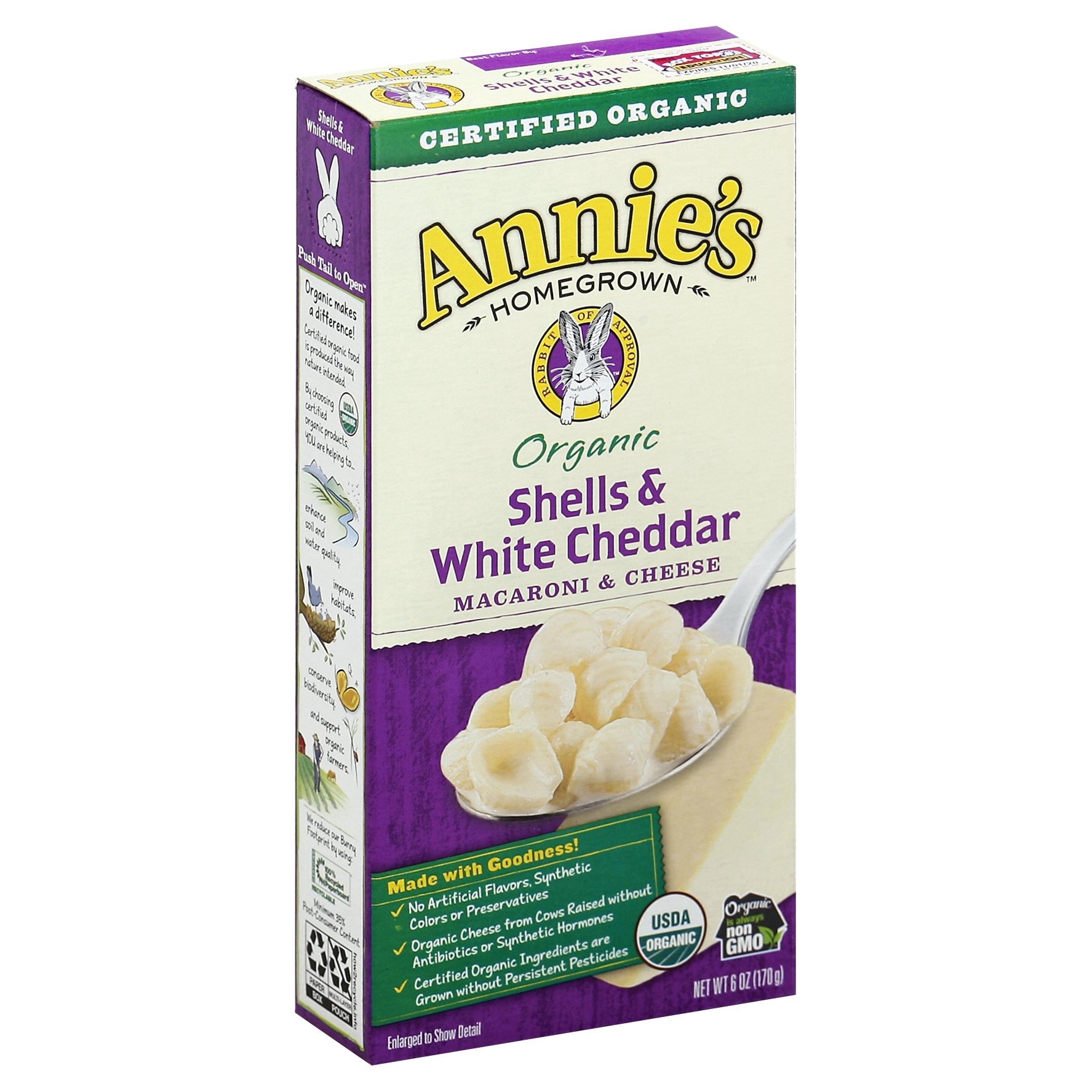 Annie's Organic Shells and White Cheddar Macaroni and Cheese is a hit that gets the whole family hopping to the table. This non-GMO and certified USDA Organic mac and cheese is simple to prepare and d…