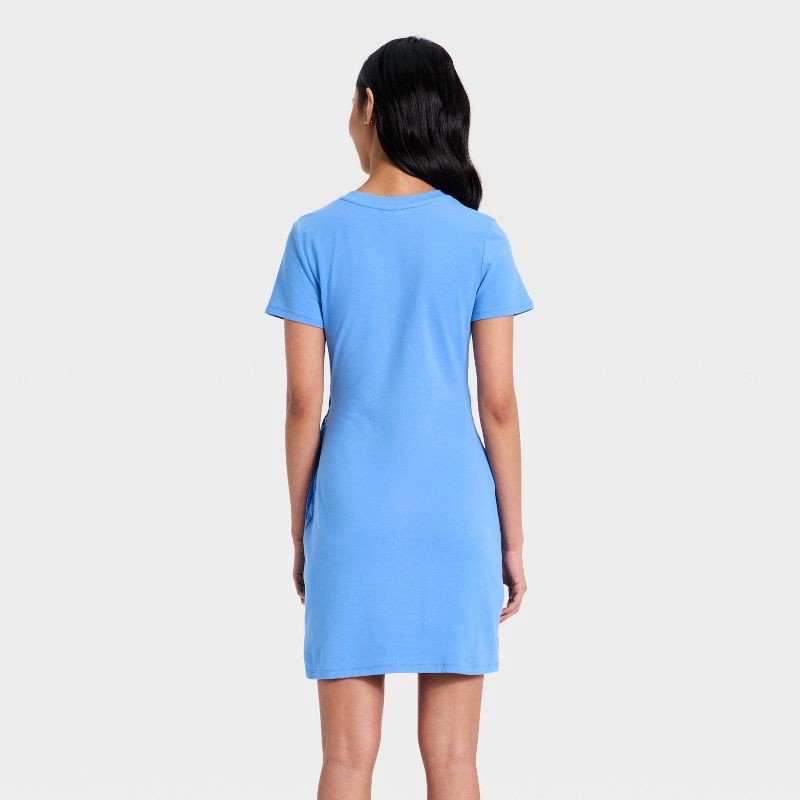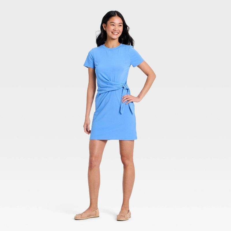 Women's Short Sleeve Tie-Front Knit Mini Dress - A New Day™ Blue M