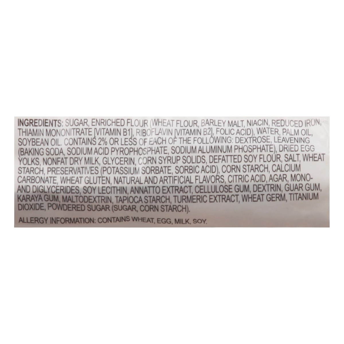 Sugar, Enriched Flour (Wheat Flour, Niacin, Reduced Iron, Thiamin Mononitrate [Vitamin B1], Riboflavin [Vitamin B2], Folic Acid), Water, Palm Oil, Soybean Oil, Contains 2% or Less of Each of the Follo…