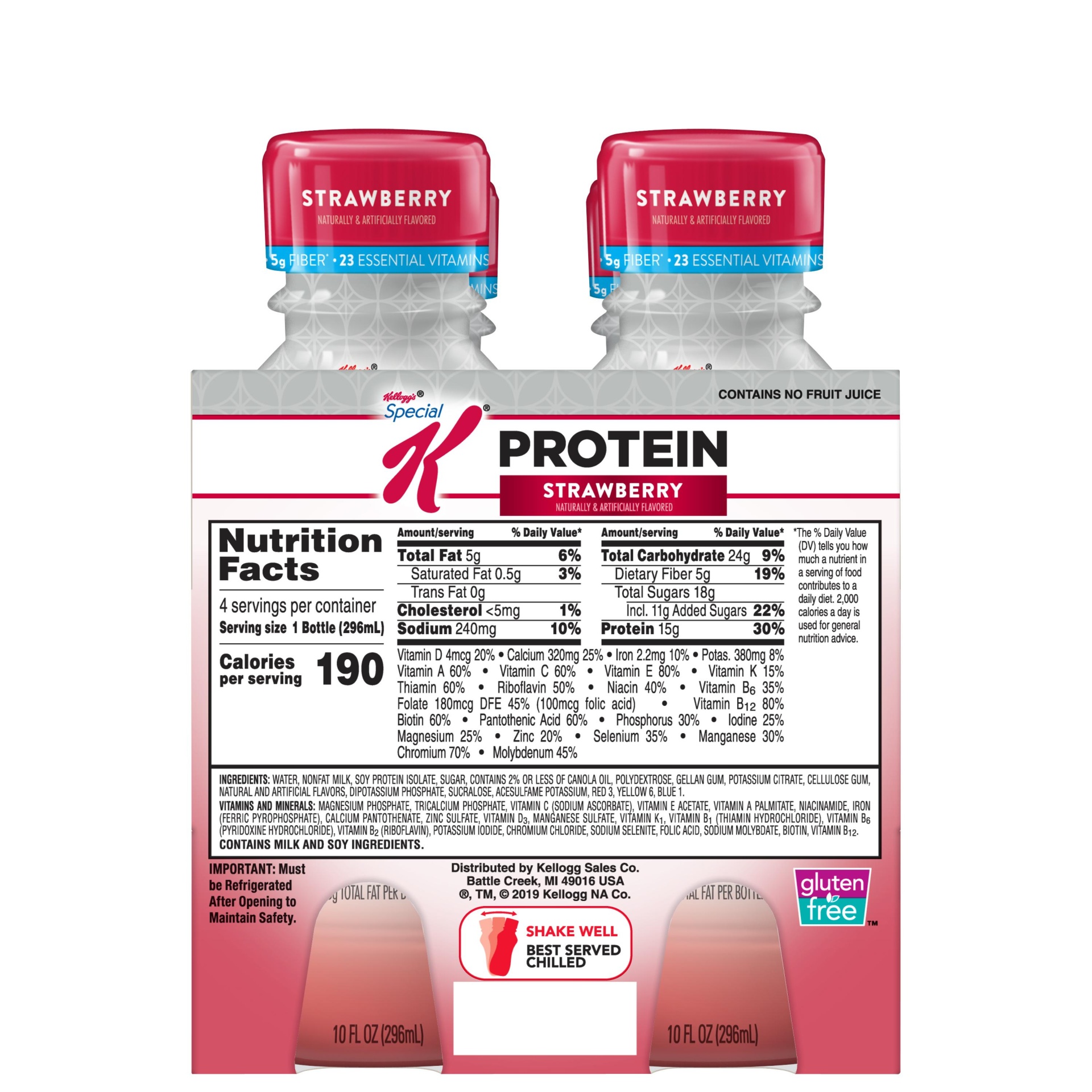 Drink up and push on with delicious, convenient Kellogg's Special K Protein Shakes. Includes 4, 10 fluid ounce bottles of strawberry flavored protein shakes made to delight taste buds with every sati…
