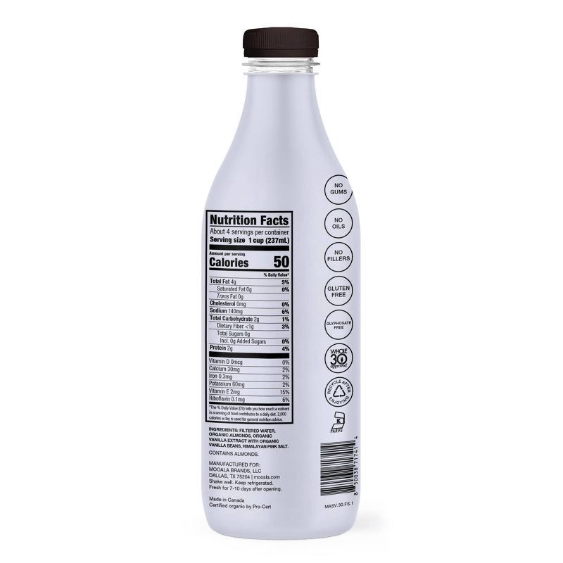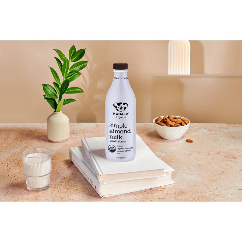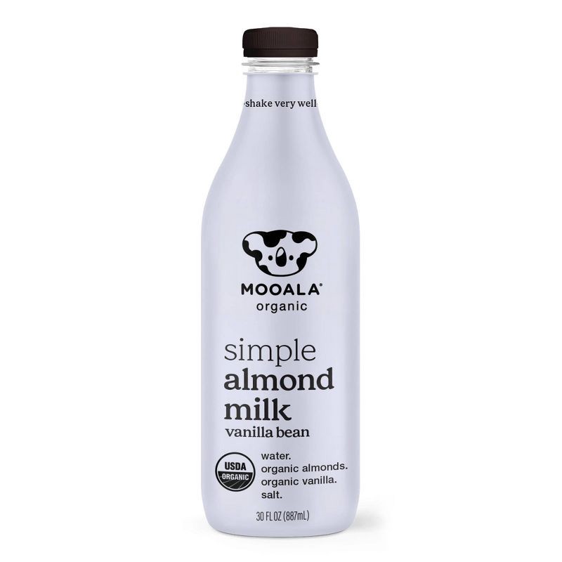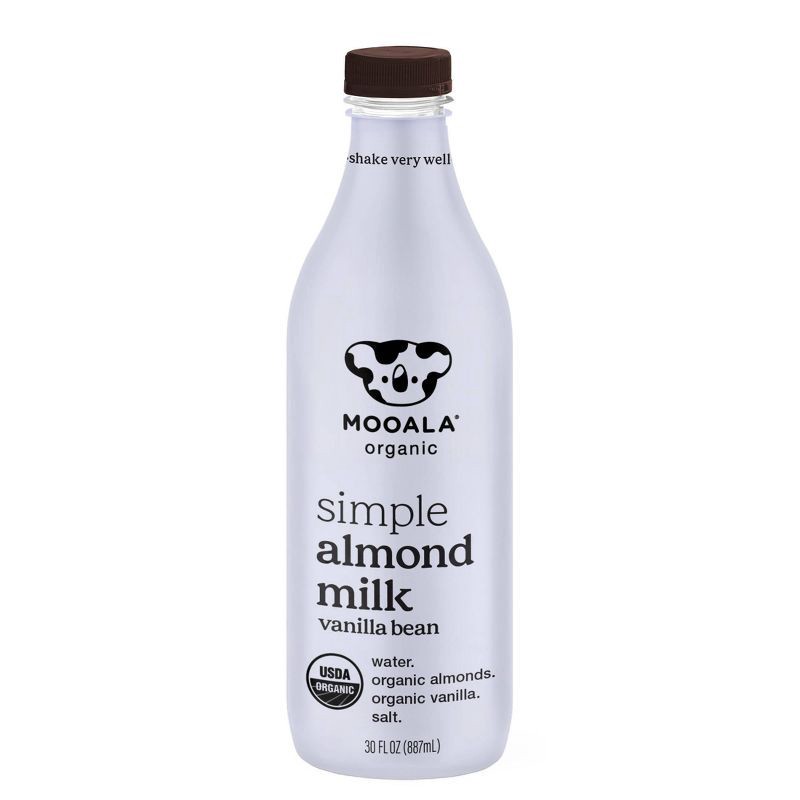 - Just 4 ingredients: Because it's simply made, you never have to worry about any gums, oils or fillers. Mooala Simple Vanilla Bean Almond Milk is made using only organic almonds, organic vanilla extract with organic vanilla beans, a pinch of Himalayan pink sea salt and filtered water. That's it.
