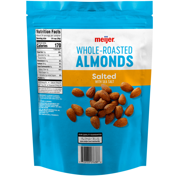 From eating them by the handful to adding them to a caramel dessert bar, Meijer Whole Unsalted Raw Roasted Almonds are a crunchy snack the entire family will love. These nuts are full of creamy, rich …