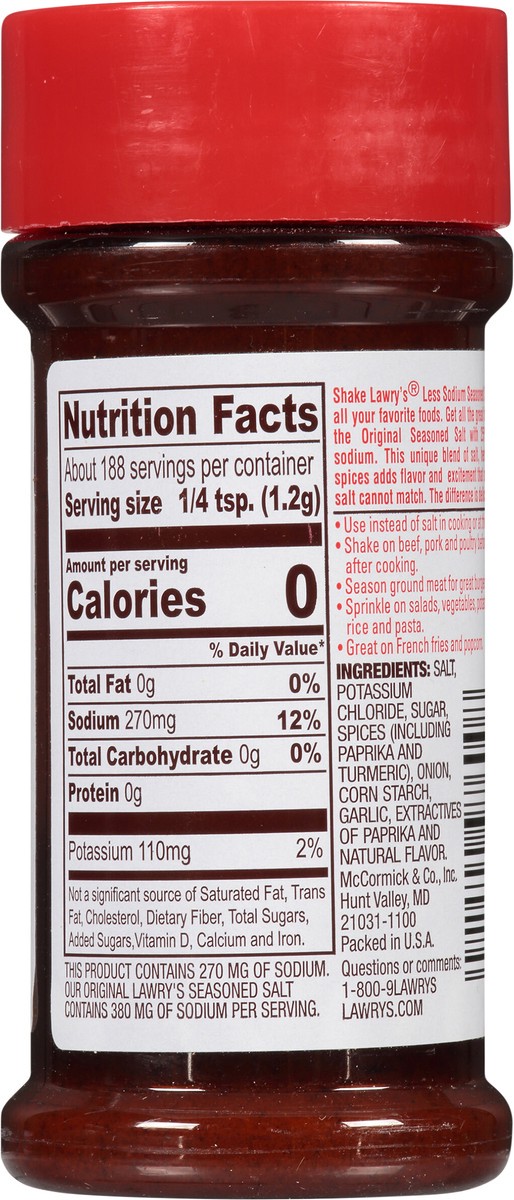 - 25% less sodium than the Original Lawry''s Seasoned Salt; same great taste
