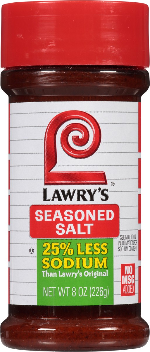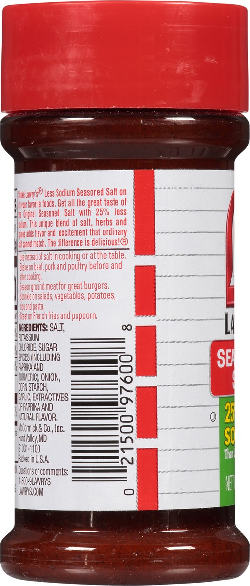 Lawry''s Less Sodium Seasoned Salt delivers the same great taste as the Original Lawry''s Seasoned Salt with 25% less sodium. Our seasoned salt, a favorite of cooks everywhere, is a blend of salt, her…