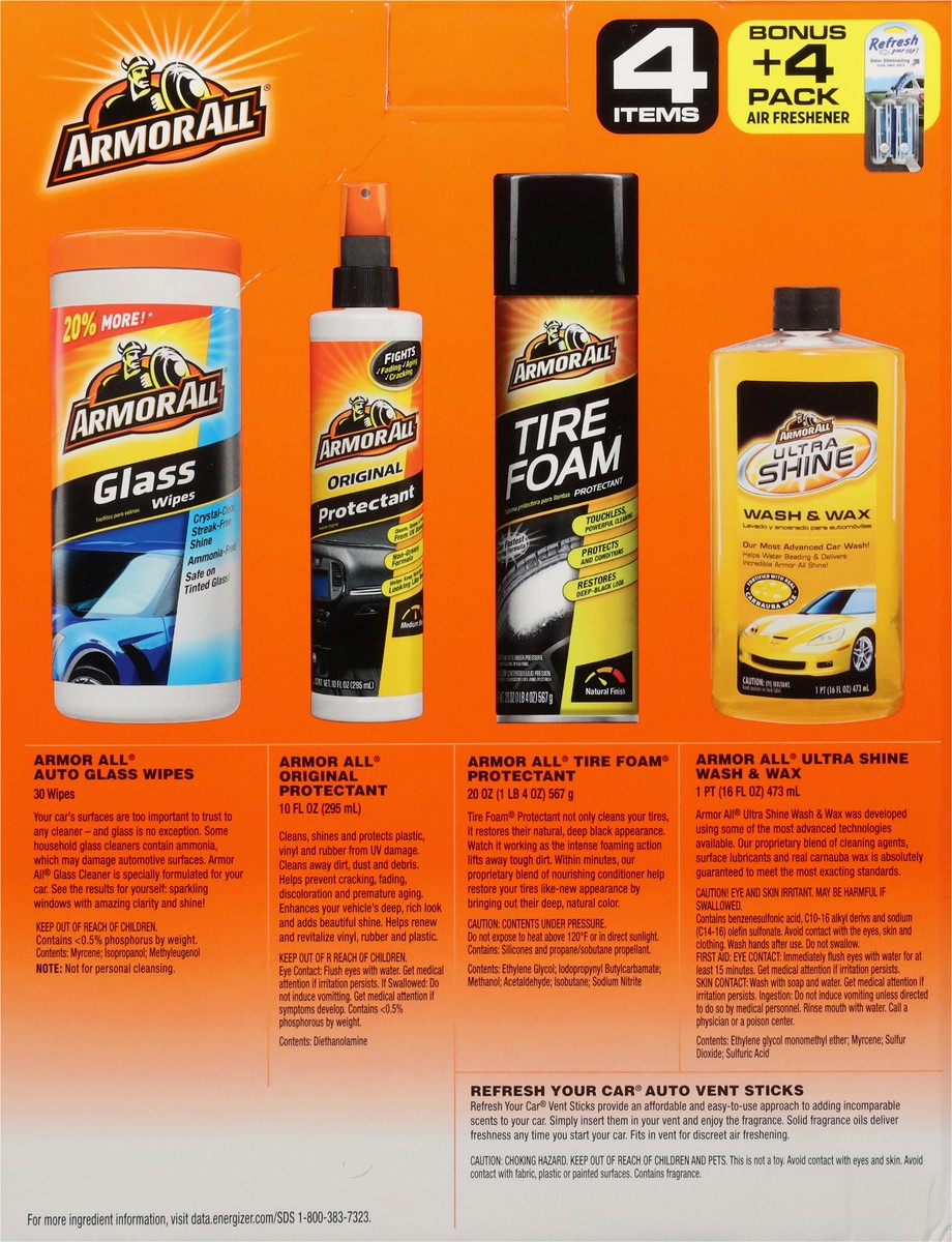- The Armor All Complete Car Care Kit delivers four proven Armor All products formulated to enhance your car’s looks and protect your automotive investment. Includes Armor All Original Protectant