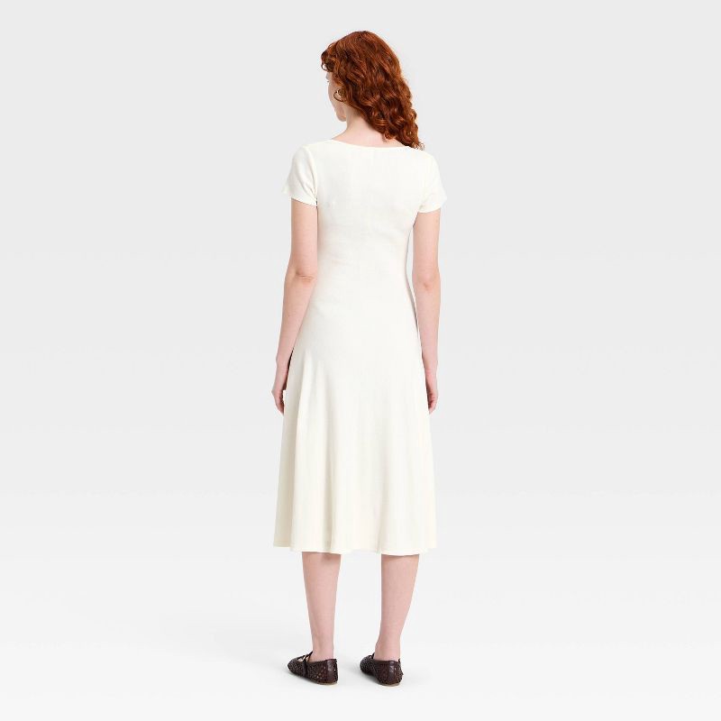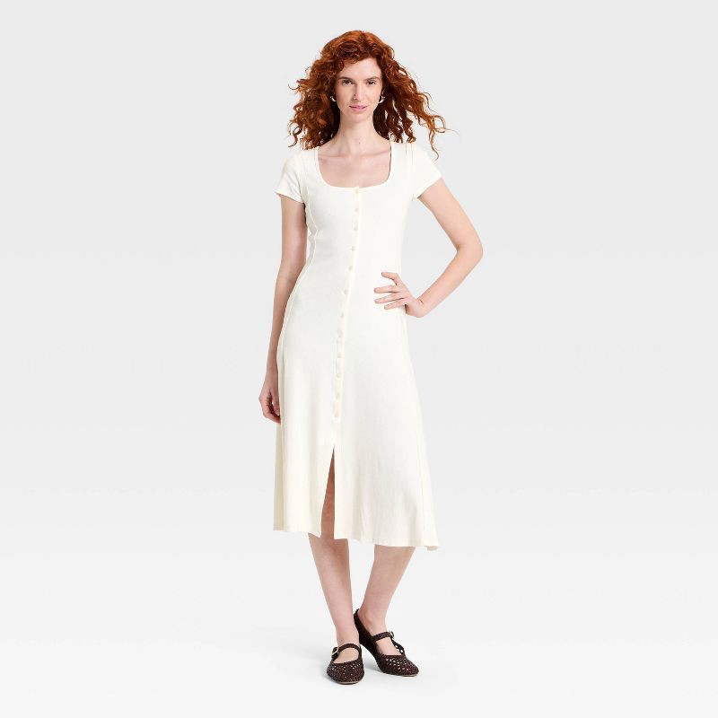 Women's Short Sleeve Ribbed Button-Front Midi Sundress - Universal Thread™ Cream L