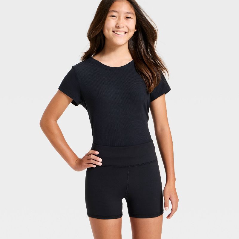Girls' High-Rise Tumble Shorts - All In Motion™ Black M