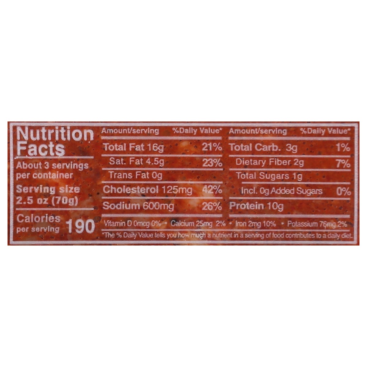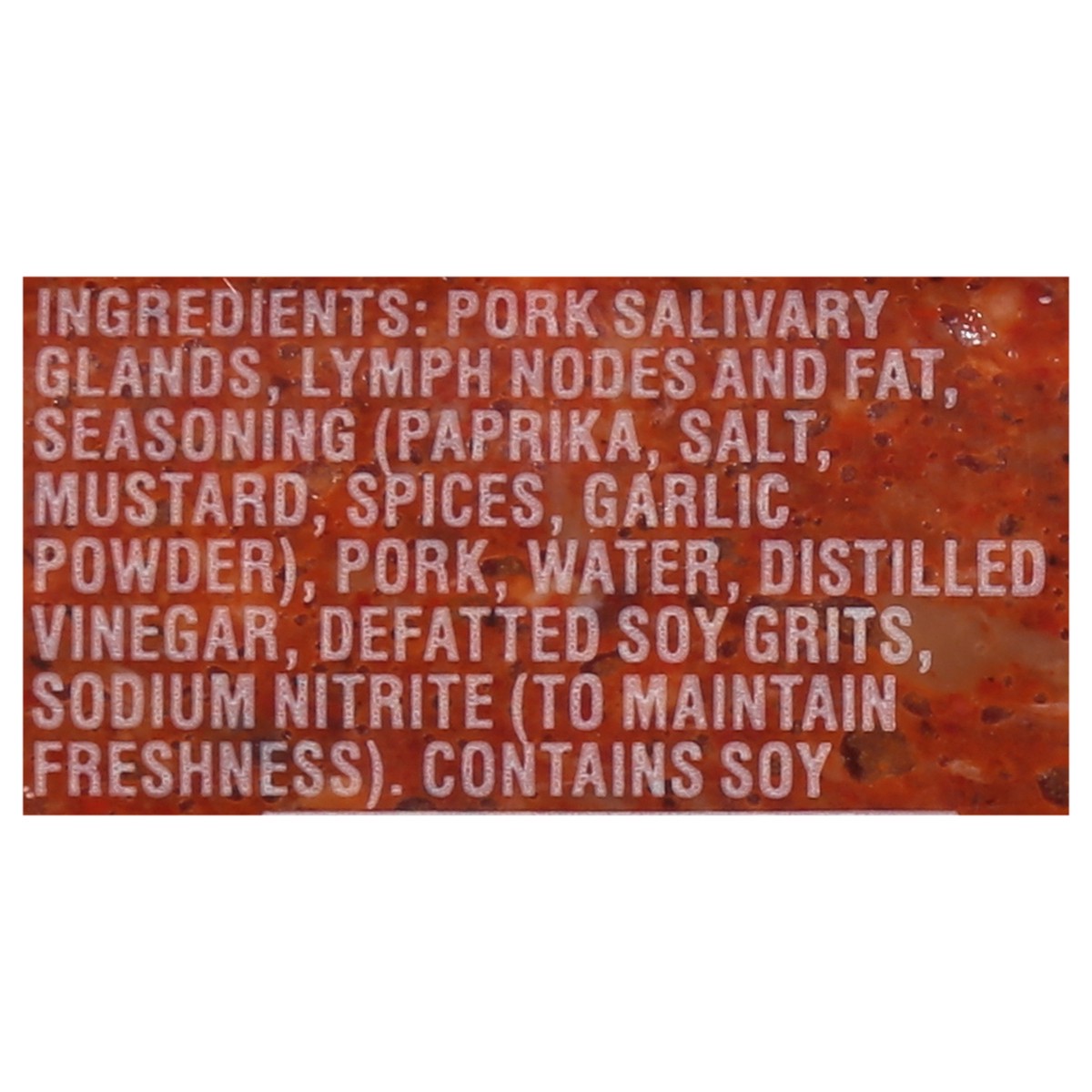Pork Salivary Glands, Lymph Nodes And Fat, Seasoning (Paprika, Salt, Mustard, Spices, Garlic Powder), Pork, Water, Distilled Vinegar, Defatted Soy Grits, Sodium Nitrite (to Maintain Freshness).