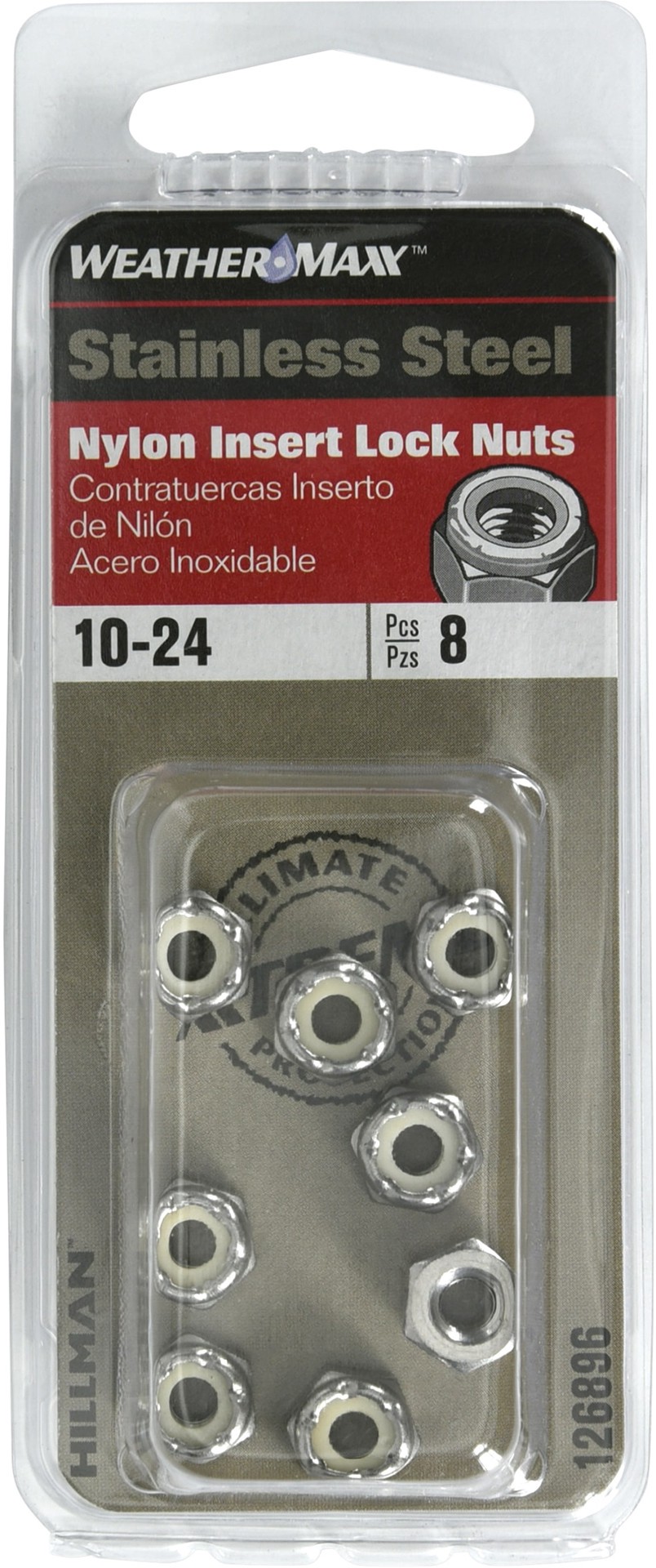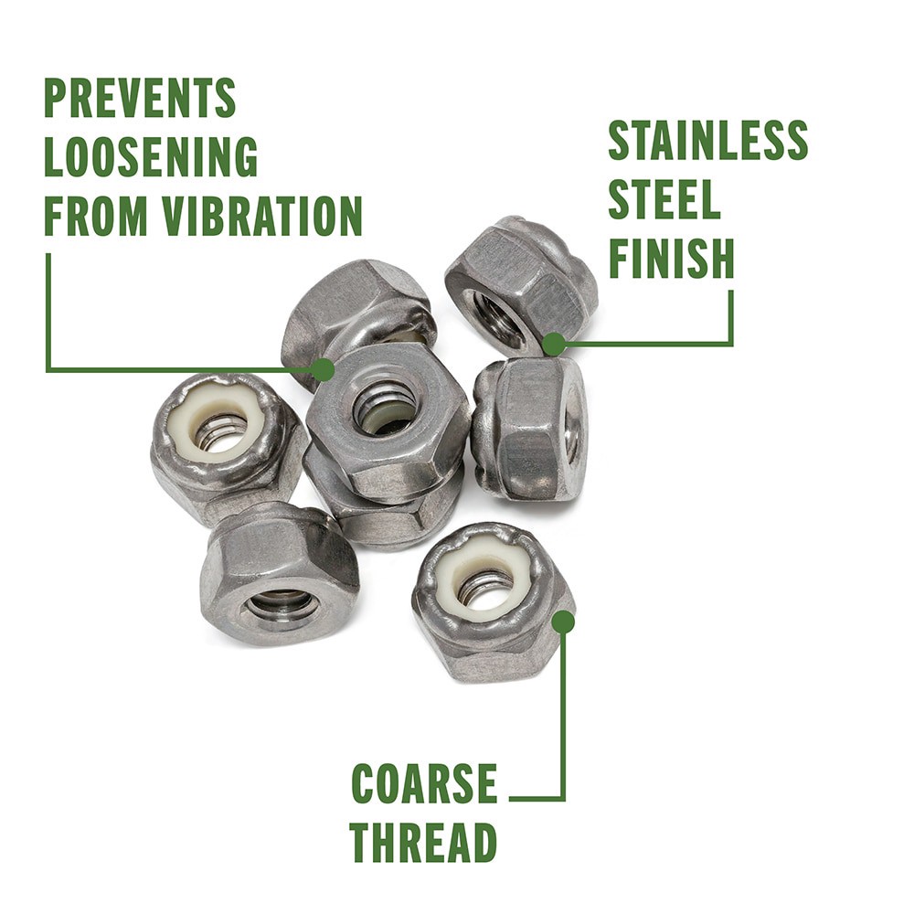 Stop nuts are designed to be fastened to a bolt when mechanically joining materials. Stainless steel offers best-in-class corrosion resistance. Install with hand tools such as a combination wrench. Ny…