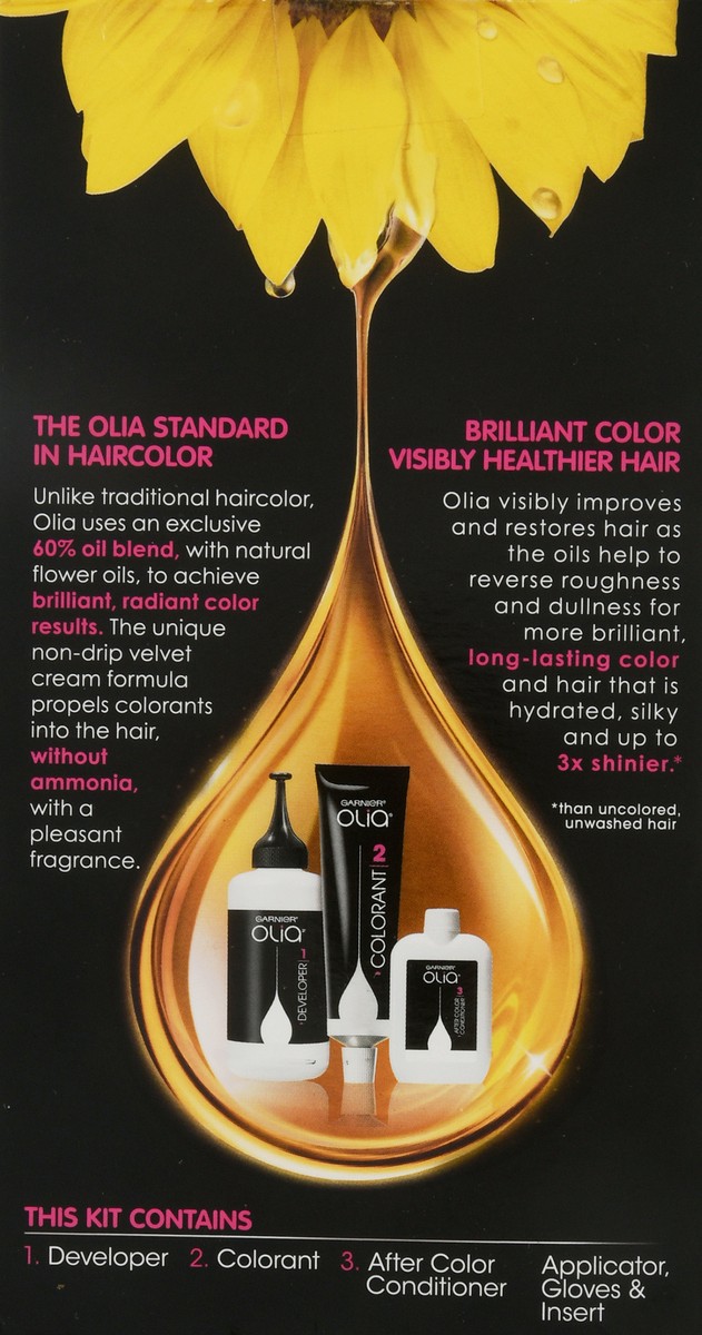 Garnier Olia Permanent Hair Color is an ammonia free, vegan formula that delivers brilliant long-lasting hair dye and 100% gray coverage without compromising the health of your hair. Olia is ammonia f…