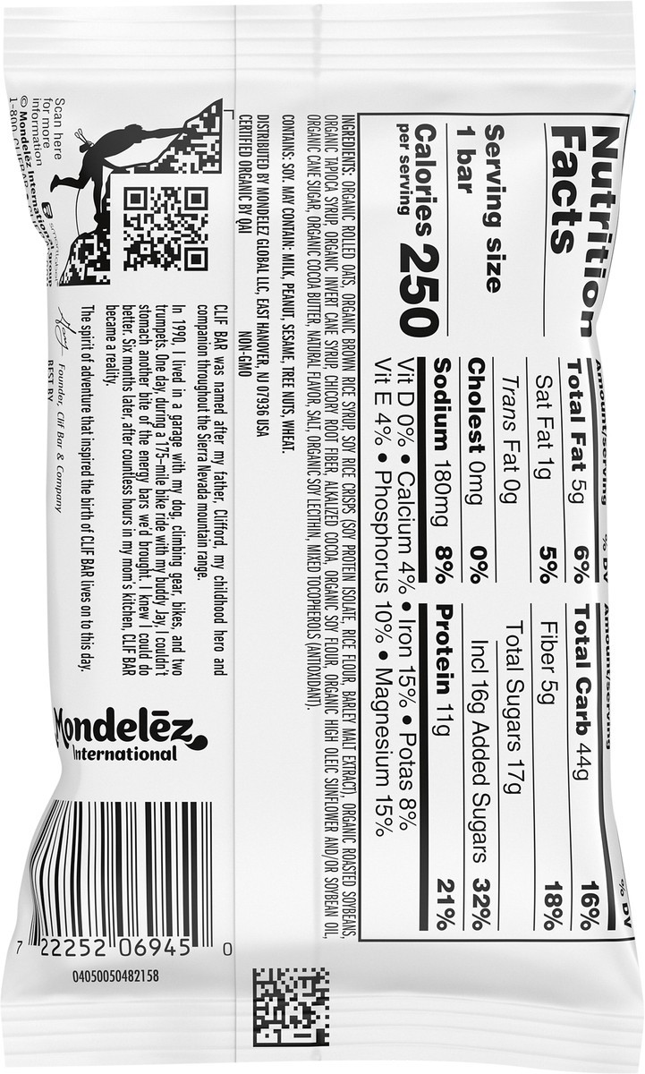 Born on a 175-mile bike ride, CLIF BAR energy bars are purposefully crafted with a mix of protein, fat, and carbohydrates to help sustain active bodies before and during long-lasting activity. CLIF BA…