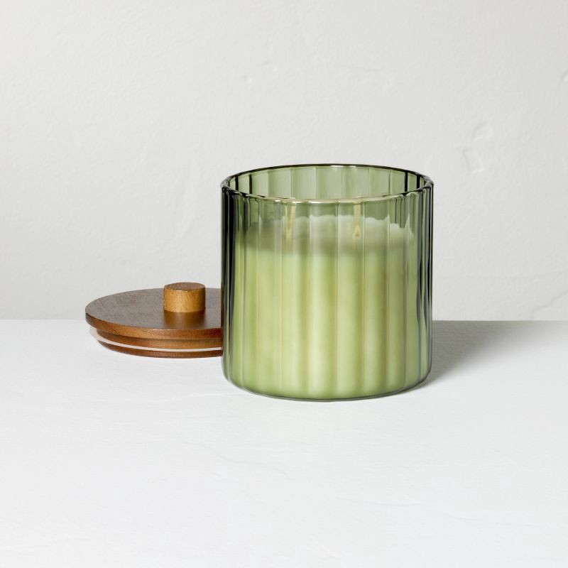 Transform your home into a tranquil sanctuary with this 2-Wick Glass with Wooden Lid Jar Candle from Hearth & Hand™ with Magnolia. Crafted with a blend of soy and paraffin wax, this 2-wick candle is h…