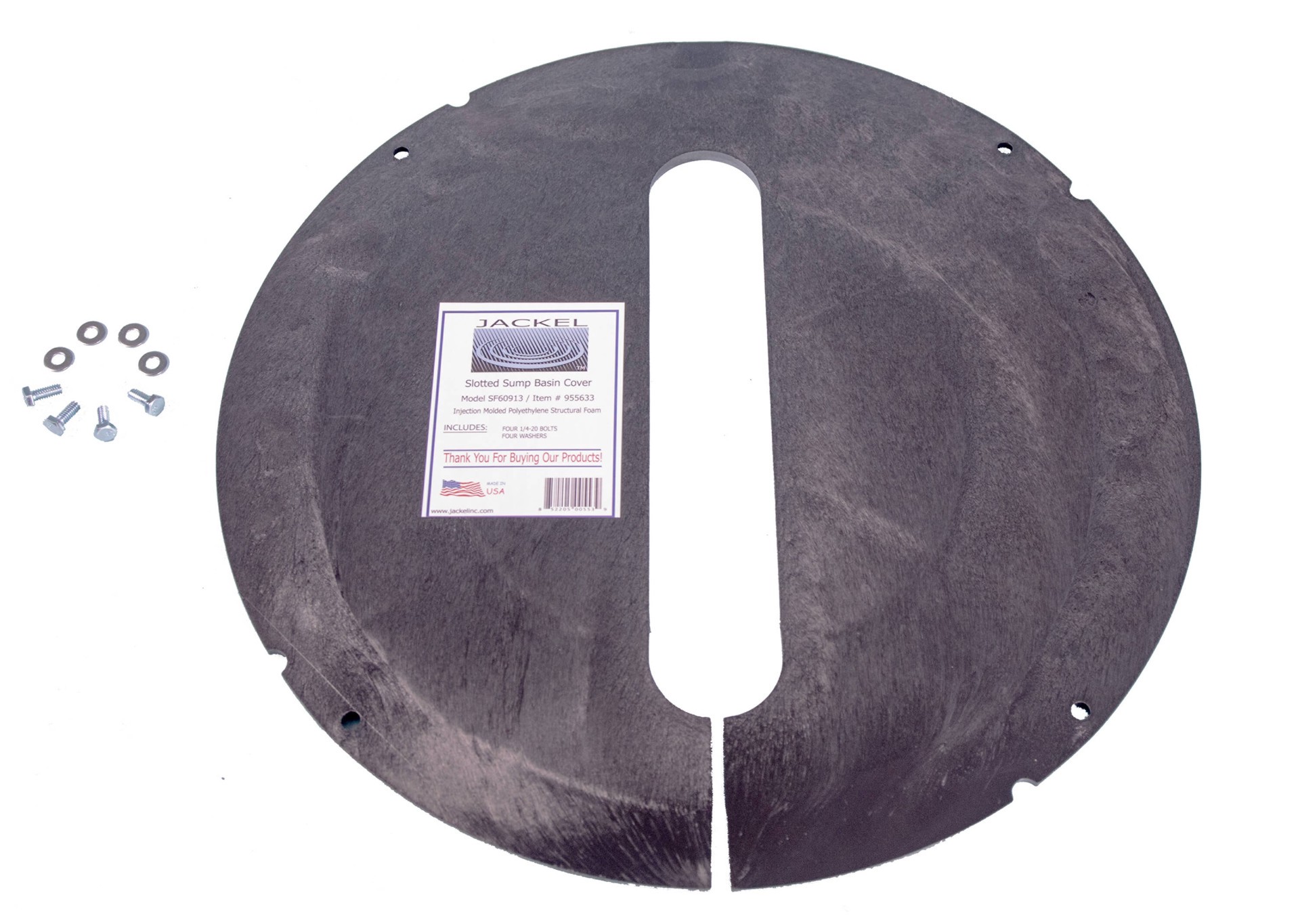 Works with pedestal or submersible sump pumps. Heavy-duty structural foam injection molded construction. Slotted design provides maximum versatility. Works with all sump pumps. Made in USA.