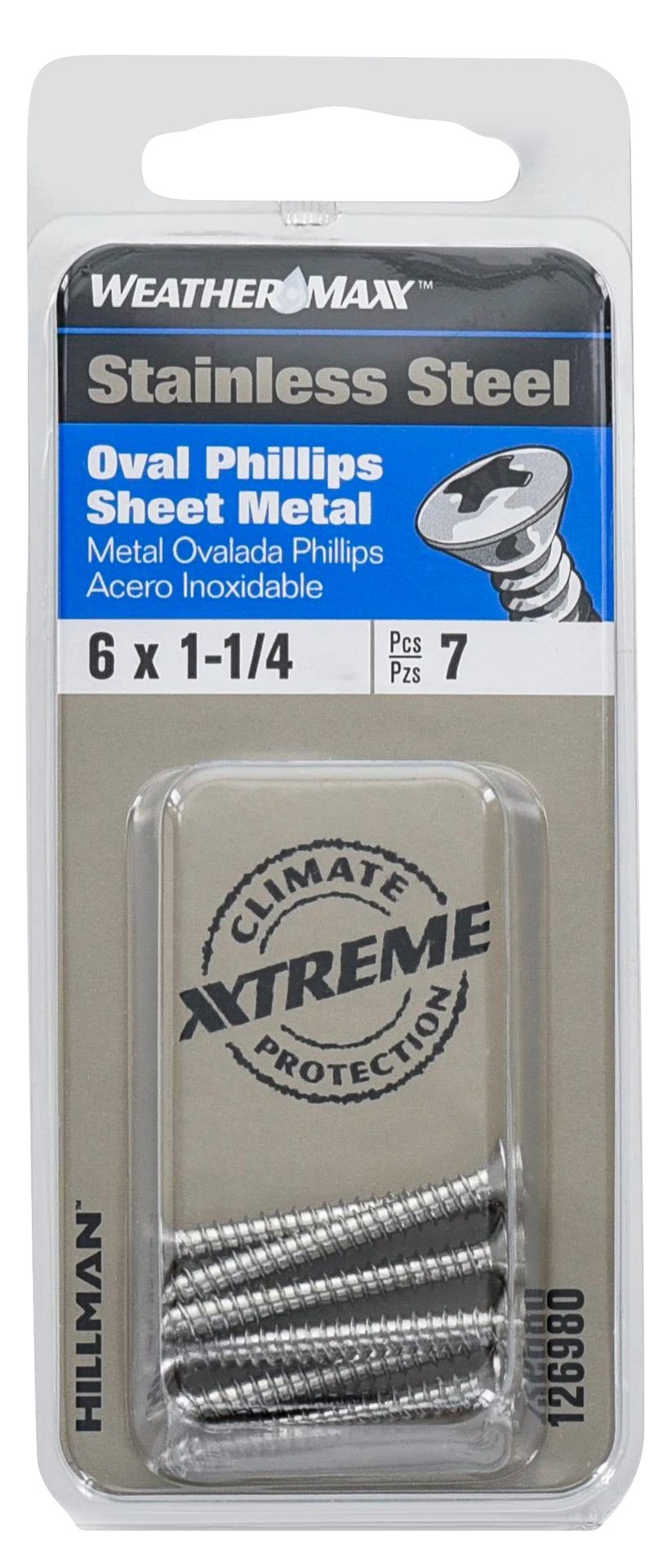 #6 screw size x 1-1/4-in length. Designed for joining metal objects, and attaching metal to wood, fiberglass, and plastic. Sharp threads ensure a secure hold in material. Stainless steel finish combin…