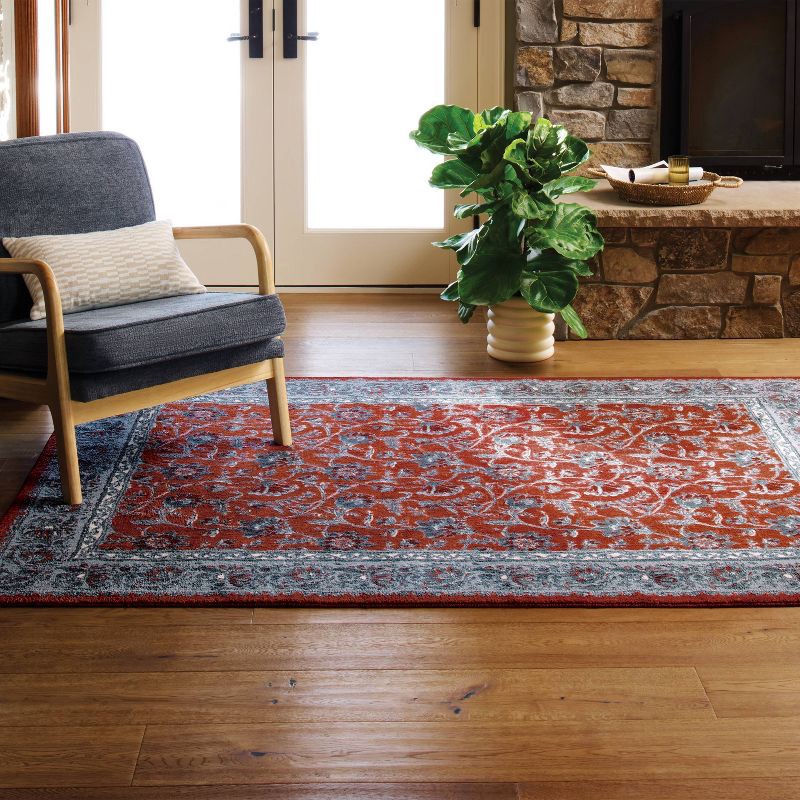 Revamp your home decor with this Americana Floral Area Rug from Threshold™. This medium-pile rug features Americana floral print in red and blue, complemented by a wide blue border, making it a perfec…