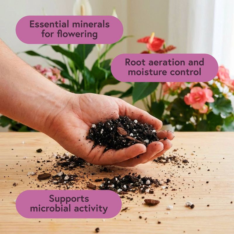 - Premium organic potting mix formulated for flowering plants